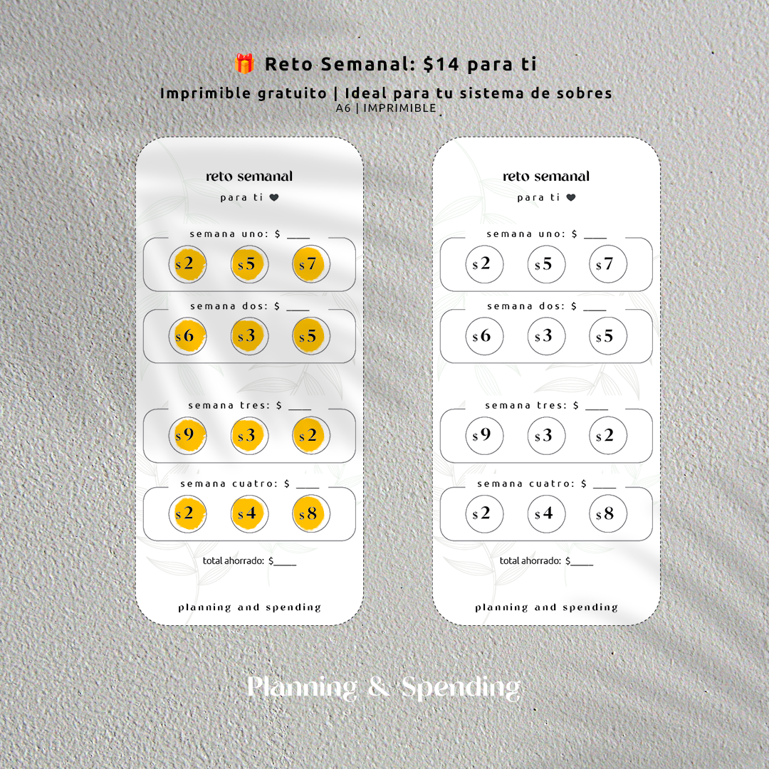 Este mini reto es para ti. Son solo $14 pesos por semana durante 4 semanas, con cantidades pequeñas ya guiadas.